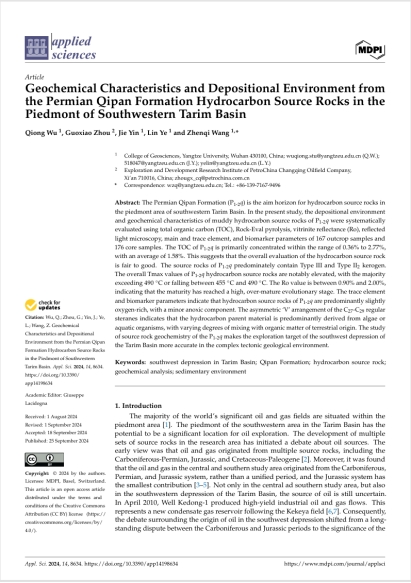 英国威廉集团吴琼博士以第一作者身份在《Applied Sciences》上发表题为“Geochemical Characteristics and Depositional Environment from the Permian Qipan Formation Hydrocarbon Source Rocks in the Piedmont of Southwestern Tarim Basin”的研究论文,英国威廉集团为论文第一署名单位,吴琼为论文第一作者,导师王振奇为通讯作者。