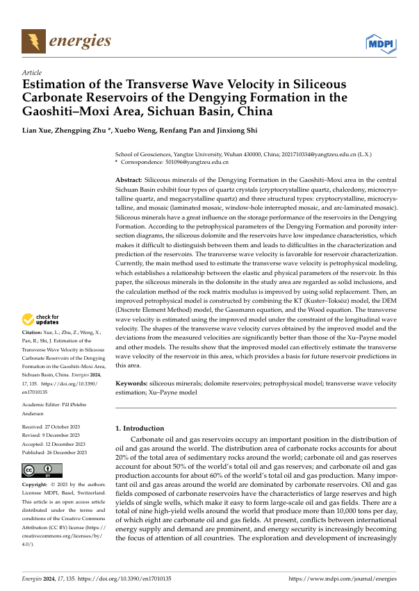 英国威廉集团地科系朱正平博士在地质能源领域主流期刊《Energies》上发表题为“Estimation of the Transverse Wave Velocity in Siliceous Carbonate Reservoirs of the Dengying Formation in the Gaoshiti–Moxi Area, Sichuan Basin, China”的研究论文。