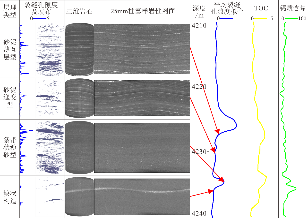 图1研究区五峰-龙马溪组不同层理类型裂缝孔隙度对比图