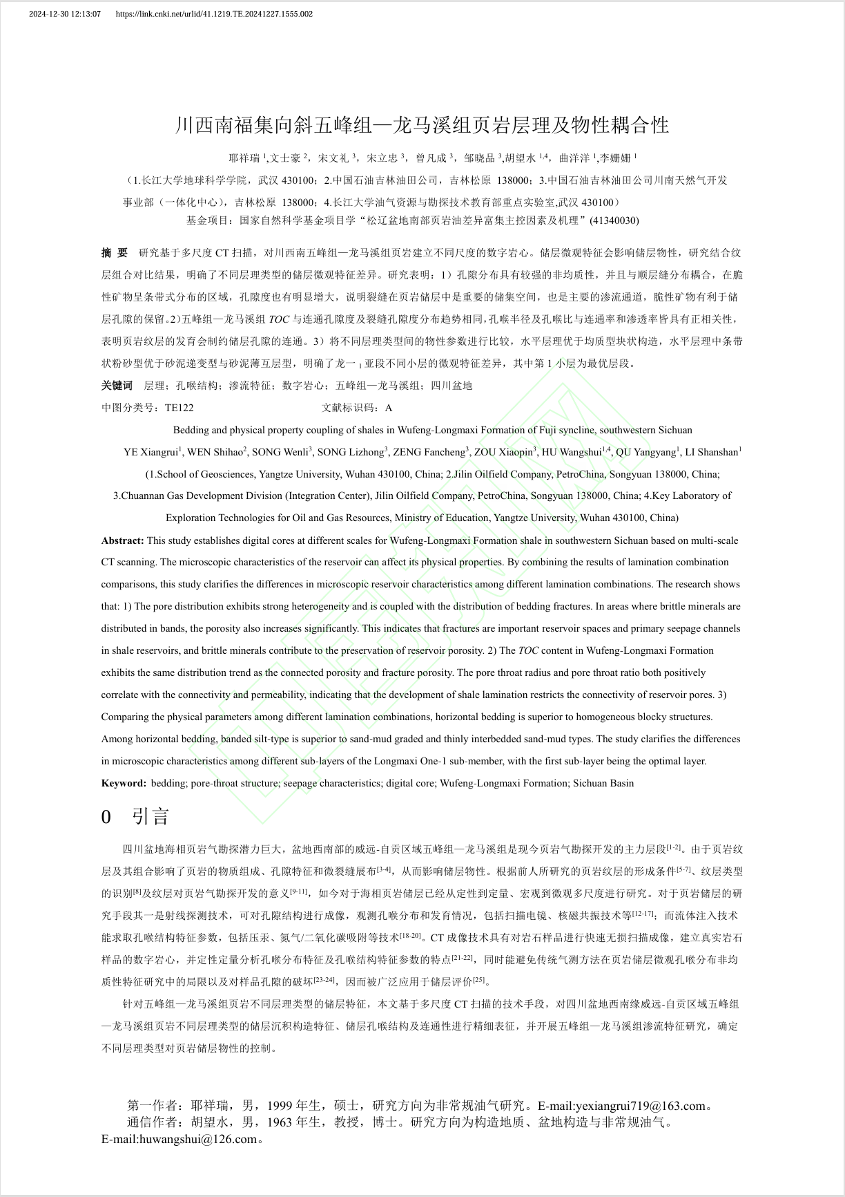 英国威廉集团硕士生耶祥瑞在《断块油气田》上发表题为“川西南福集向斜五峰-龙马溪组页岩层理及物性耦合性”的研究论文。英国威廉集团为论文第一署名单位,硕士生耶祥瑞为论文第一作者,教授胡望水为通讯作者。