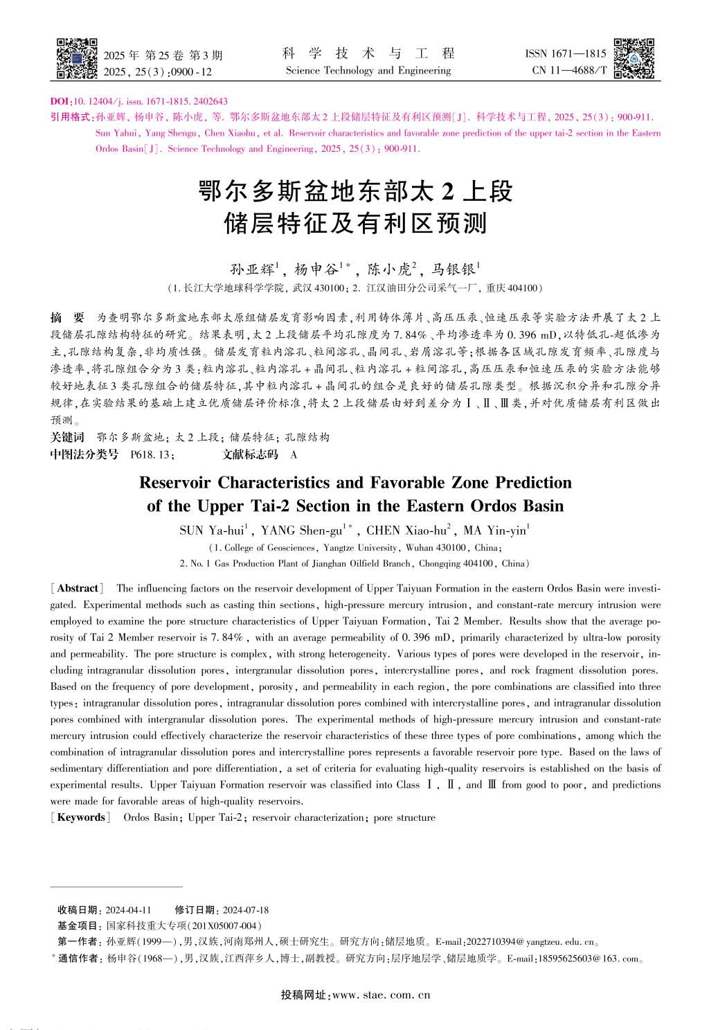 英国威廉集团硕士生孙亚辉在《科学技术与工程》期刊上发表题为“鄂尔多斯盆地东部太2上段储层特征及有利区预测”的研究论文。英国威廉集团为论文第一署名单位,杨申谷副教授为第一通讯作者,论文由国家科技重大专项《大型油气田及煤层气开发》基金项目资助。
