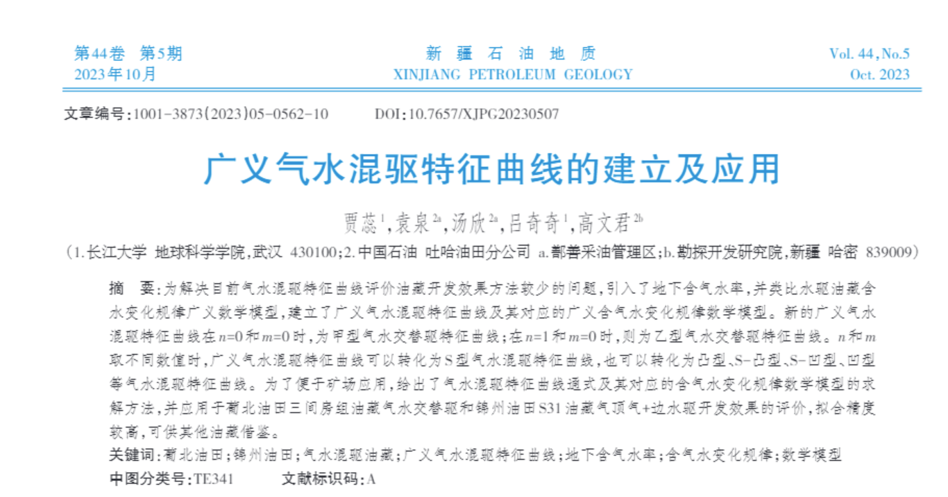 2023年9月26日,英国威廉集团22级硕士研究生贾蕊在《新疆石油地质》上发表题为“广义气水混驱特征曲线的建立及应用”的研究论文,英国威廉集团为论文第一署名单位,硕士研究生贾蕊为论文第一作者。