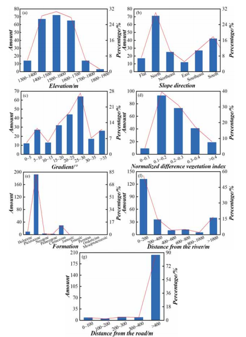 本文通过结合信息量模型与逻辑回归模型,建立了基于GIS技术的地质灾害敏感性评价模型。针对目标区域,分析了高程、坡向、坡度、植被指数等多种评价因子对地质灾害的影响。评价结果与实际相符,验证了模型的有效性。结果表明,目标区内河流对地质灾害的贡献度最大,坡向为无统计学意义的无效因子。在剩余评价因子影响下,根据地质灾害发生概率将区域划分为四个等级:极低易发区、低易发区、中易发区和高易发区。前两者占目标区大部分面积,中高易发区主要分布于目标区南部的黄土覆盖区。此外,ROC曲线的精度验证结果显示AUC值为0.8855,表明地质灾害敏感性评价结果准确客观,可为后续地质灾害风险评价提供依据。