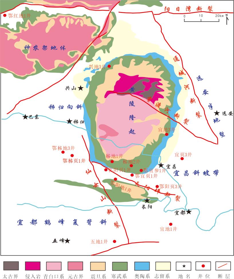 根据对样品固体沥青和笔石表皮体光学特征的研究,陡山组和牛蹄塘组页岩中,固体沥青反射率和激光拉曼参数光谱两种评价指标均能评价页岩的成熟度。五峰-龙马溪组页岩中,固体沥青反射率的相对误差较大,因此采用笔试表皮体反射率和激光拉曼光谱参数评价页岩的成熟度。综合三种评价指标得出陡山组页岩的 EqVRo为 2.88%~3.81%、牛蹄塘组页岩EqVRo 为 2.44%~3.41%、五峰-龙马溪组的 EqVRo为 1.75%~2.82%。页岩热成熟度平面规律绕背斜核部呈现放环状分布,靠近背斜核部成熟度逐渐降低。通过等效镜质体反射反算出黄陵隆起核部边缘地层所经历最高古地温为 200℃左右,佐证黄陵隆起形成时间应为晚侏罗世-早白垩世。