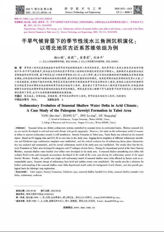该成果不仅为干旱—半干旱气候背景下季节性浅水三角洲的沉积机制提供了新的理论依据,也为塔里木盆地岩性圈闭勘探提供了重要地质参考。