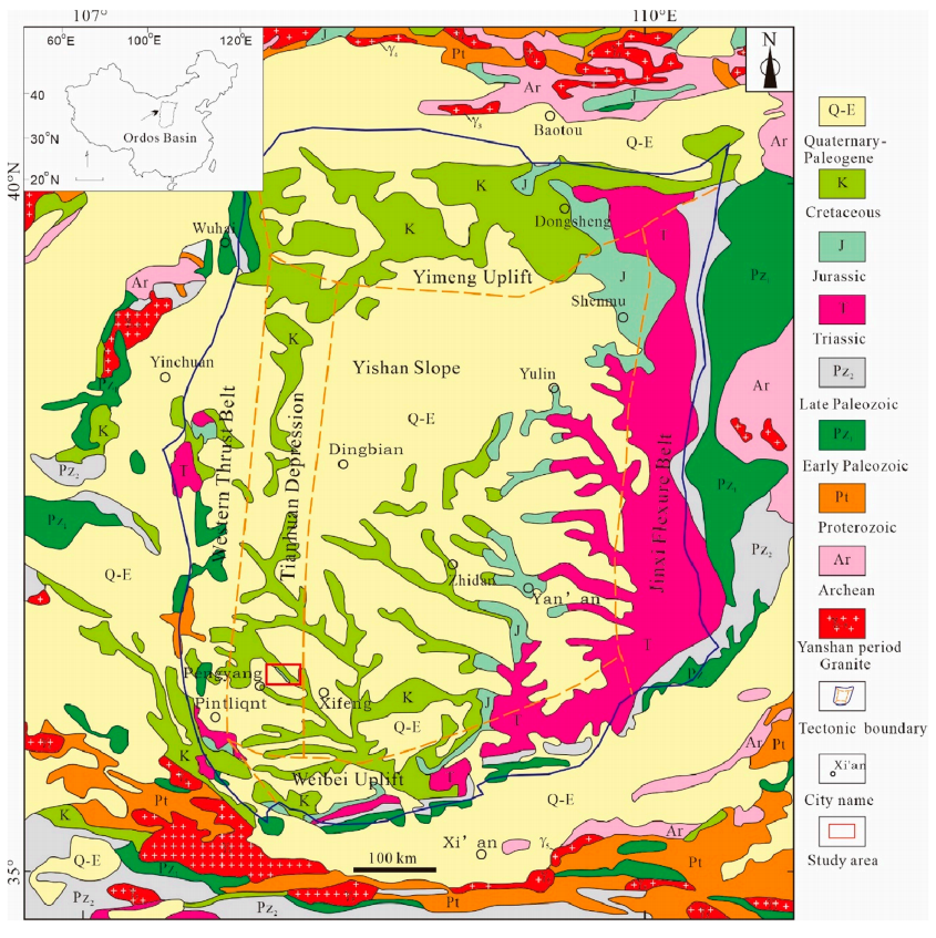 图1鄂尔多斯盆地构造单元及地质图(据赵等,2020修编)