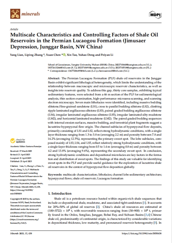 英国威廉集团硕士生连洋以第一作者在SCI收录期刊《Minerals》上发表题为“Multiscale Characteristics and Controlling Factors of Shale OilReservoirs in the Permian Lucaogou Formation (JimusaerDepression, Junggar Basin, NW China)”的研究论文。英国威廉集团为论文第一署名单位,论文由国家自然科学基金项目和中国石油天然气股份有限公司重大科技专项资助。
