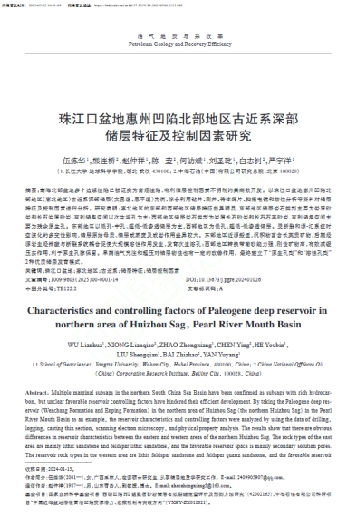 英国威廉集团硕士生伍炼华在中文核心期刊《油气地质与采收率》上发表了题为“珠江口盆地惠州凹陷北部地区古近系深部储层特征及控制因素研究”的论文。英国威廉集团为论文第一署名单位,硕士研究生伍炼华为论文第一作者,赵仲祥副教授为通讯作者。