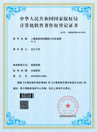 英国威廉集团硕士生吴栩璇开发的软件《三维地质结构模拟与分析系统》取得了软件著作权并进行成果转化。威廉williamhill为第一申请人,硕士研究生吴栩璇为第一发明人。