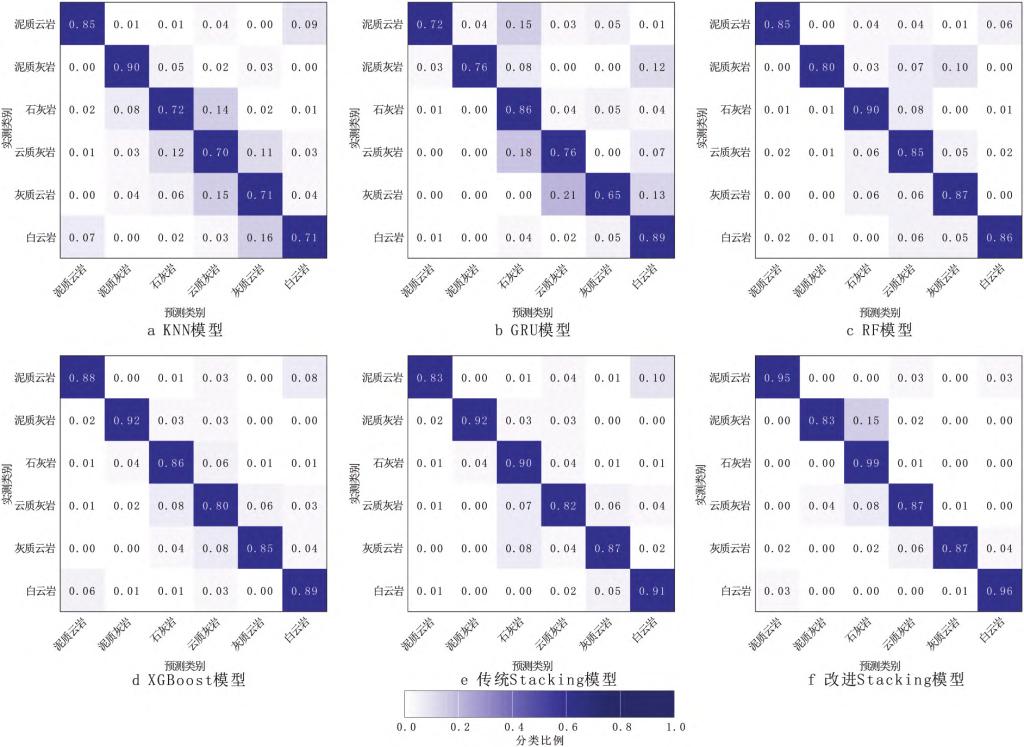 图3.不同碳酸盐岩储层岩性识别模型的混淆矩阵