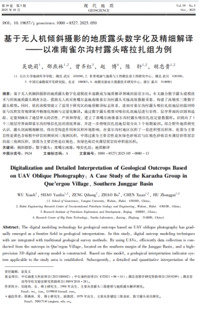 英国威廉集团地质学专业2021级硕士研究生吴晓莉在中文核心期刊《现代地质》发表题为“基于无人机倾斜摄影的地质露头数字化及精细解译-以准南雀尔沟村露头喀拉扎组为例”的研究论文。英国威廉集团为论文第一署名单位,硕士研究生吴晓莉为论文第一作者,导师邵燕林教授为通讯作者。